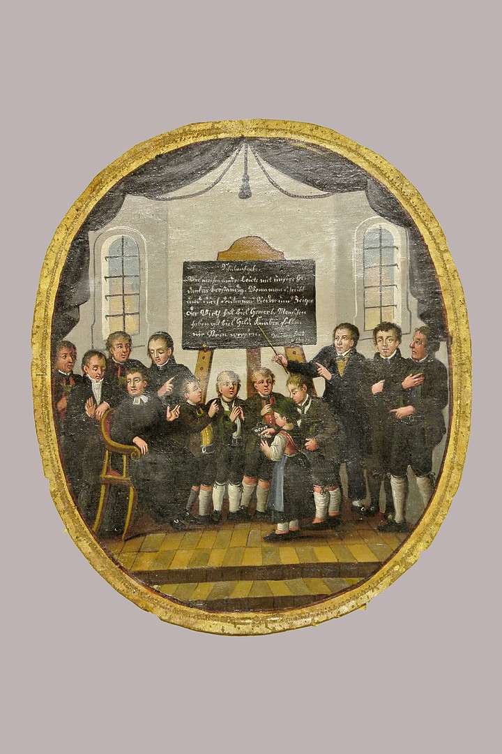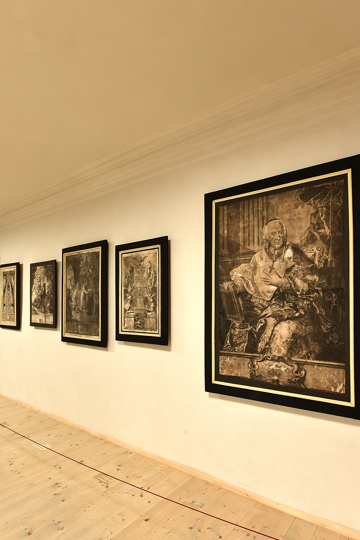 Das Obergeschoß nimmt die barocke Kunst und die Kunst des 19. Jh. auf. Zu sehen sind u.a. mehrere großformatige Thesenblätter, zwei Heiligenfiguren (hll. Johannes Ev. und Andreas) von Johann Michael Fischler, ein schwebender Engel von Stefan Föger und zahlreiche Gemälde.