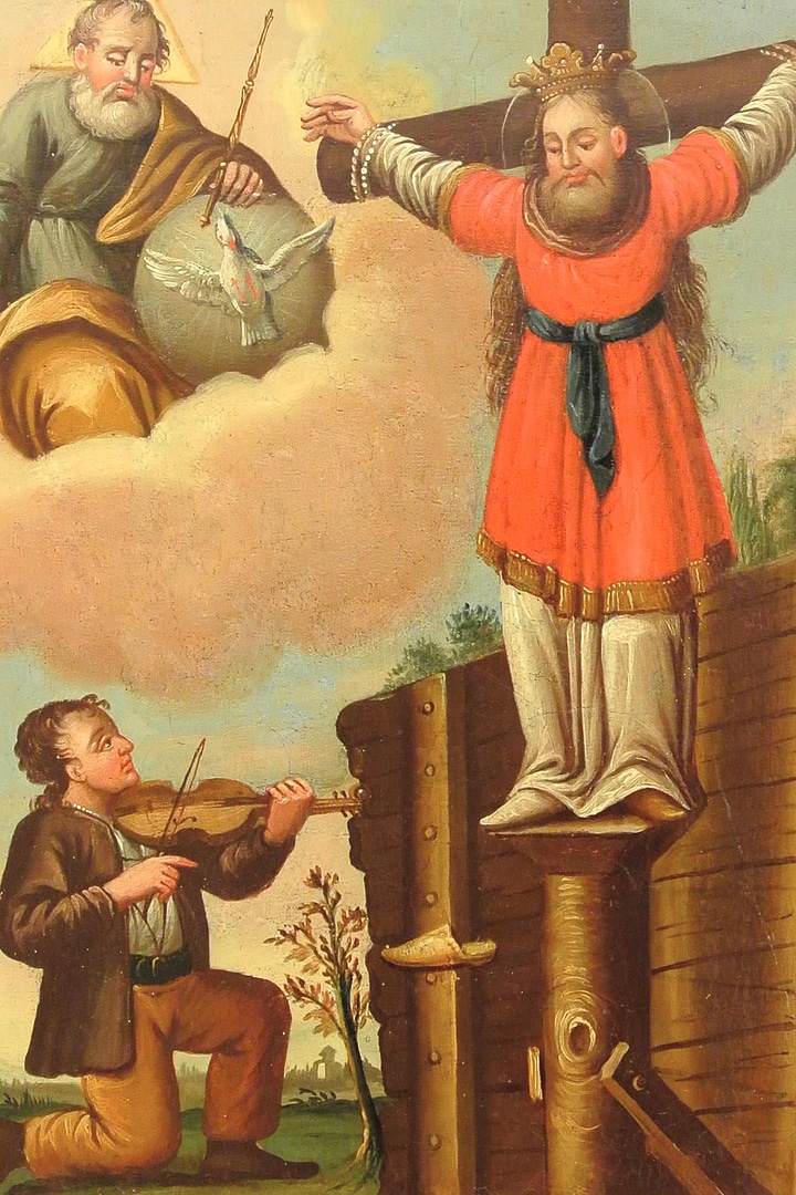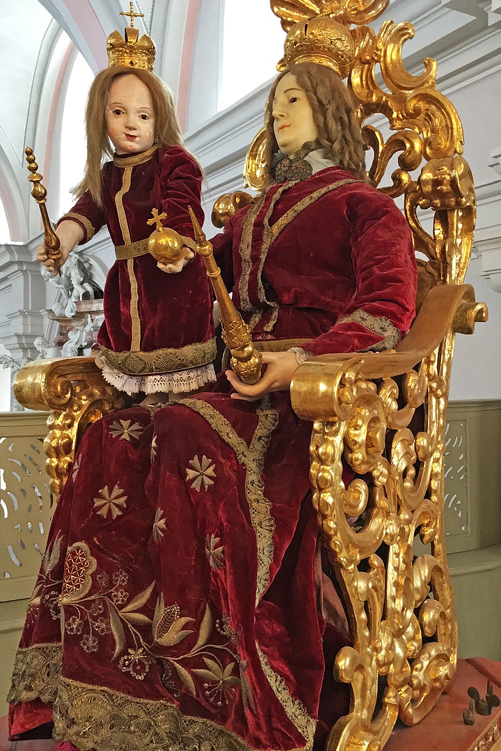 Die beiden Köpfe - wahrscheinlich der Erzengel Gabriel und die Gottesmutter Maria - sind vermutlich von einem Wanderkünstler geschaffen worden, der mit der französischen Kunst seiner Zeit vertraut war. Sie sind im Tiroler Bereich beispiellos und von hervorragender Qualität.